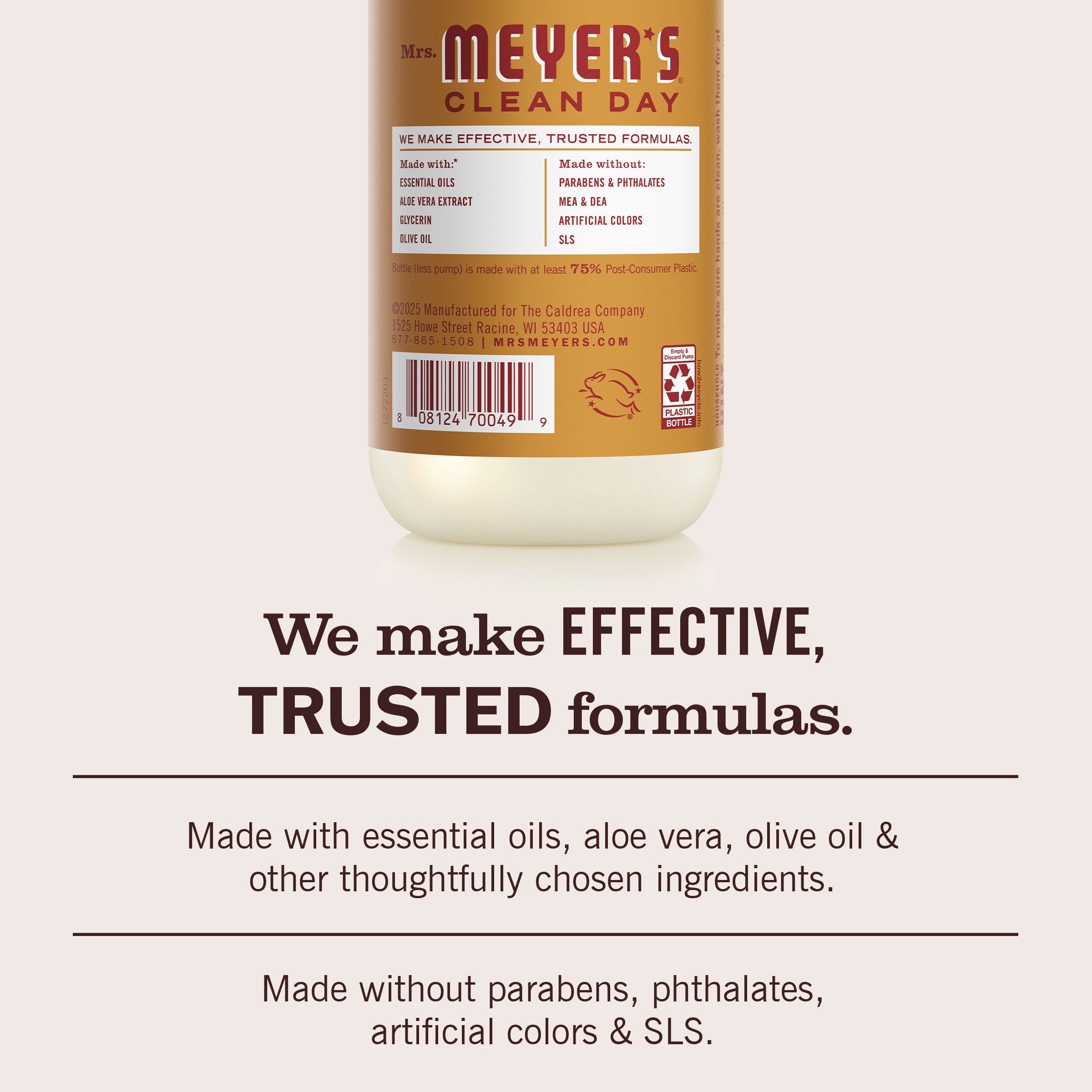 - TESTED & TRUSTED: Mrs. Meyer’s products are made with essential oils. aloe vera extract. olive oil. and other thoughtfully chosen ingredients that are cruelty-free and Leaping Bunny Certified.